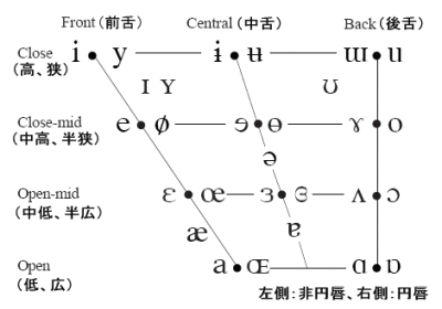 非円唇は、日本語の「あ」よりも、舌の最高点が前にある。